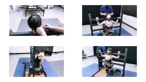 波点布条勒嘴再用胶带封嘴小美女正在努力挣脱束缚1116